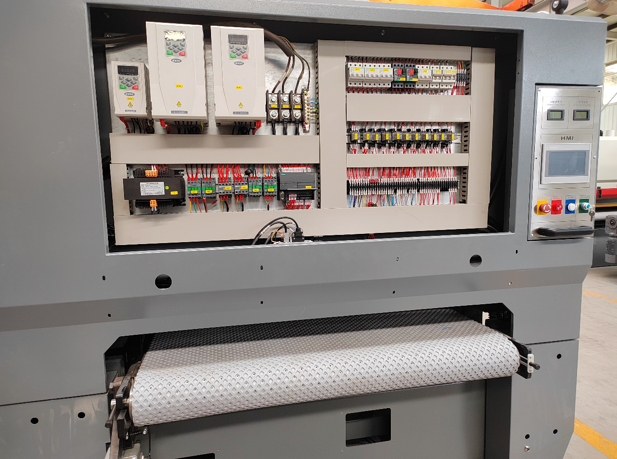 该设备采用z6com人生就是博ENA100系列变频器,控制砂带旋转速度和送料速度的自动化砂光机,可实现无级变速,降低人力需求、增进产能。